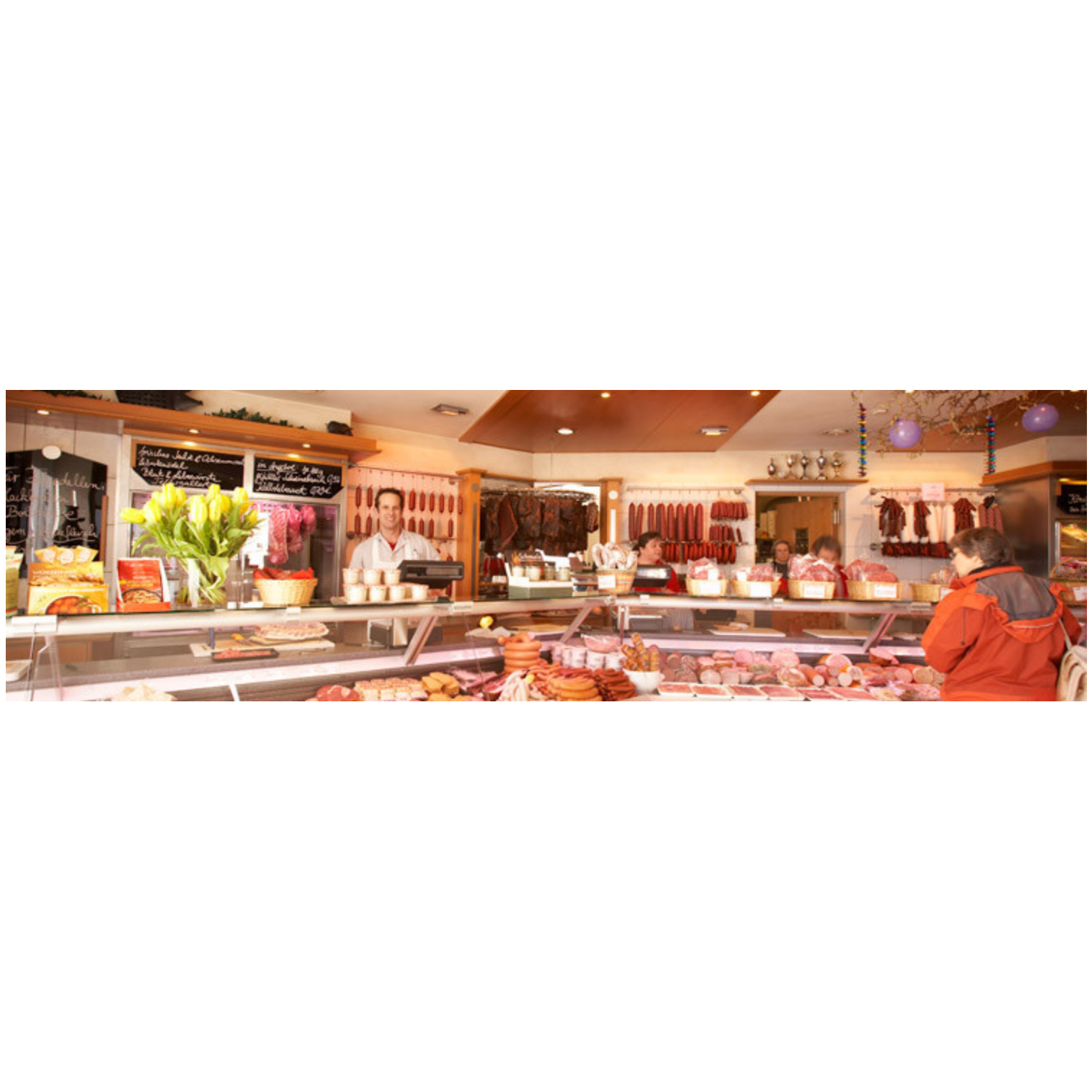 Das Fleisch, das bei uns verarbeitet wird, kommt aus der Region. Wir kaufen unsere Rohprodukte bei lokalen Landwirten und vermeiden so unnötig lange Tiertransporte und somit den damit einhergehenden Qualitätsverlust. Denn unsere Verantwortung beginnt schon im Stall. Durch langjährige Beziehung zu unseren Lieferanten kennen wir deren Arbeitsweise sehr genau und können so sicherstellen, dass nur das Beste in unsere Theke kommt.
